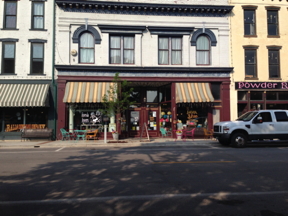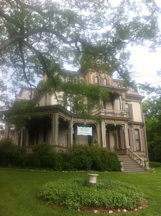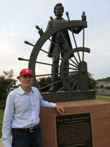 We flew to St. Louis and drove to Hannibal, arriving at Garth Woodside Mansion B&B in the early afternoon. We attended the Mark Twain Festival down town, serendipitously in progress, enjoying local artists and crafts people. We ate at the Planters’ Café on Main Street, and went through some of the museums and amusements. We found cousin Steve Ayers’ coffee shop and retail store. His pottery business is one street west. | ![]() |