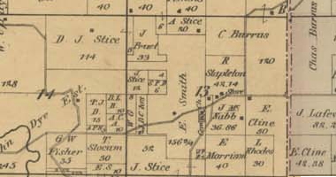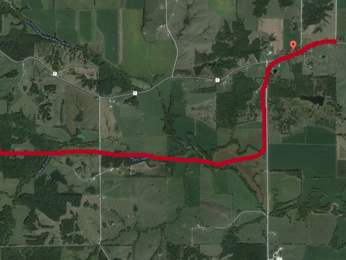 In 1858, and presumably 1862, the date of the battle, the west half of section 13 was owned by Rudolph March. A road passes directly through the area to a crossing of the Fabius River. Mudd mentions fording the Fabius at a location above the main Kirksville road. That may have been the route branching south through the J. Stice property. It crosses the same river below the presumed Porter fording location. |