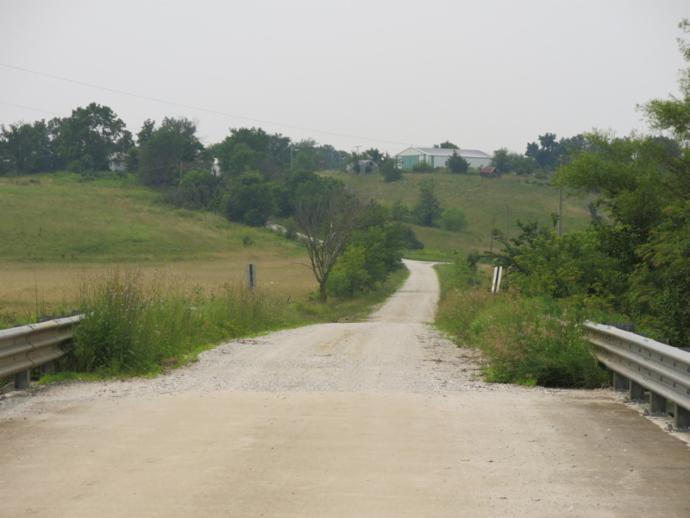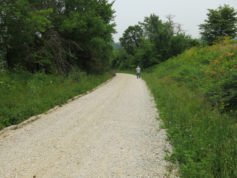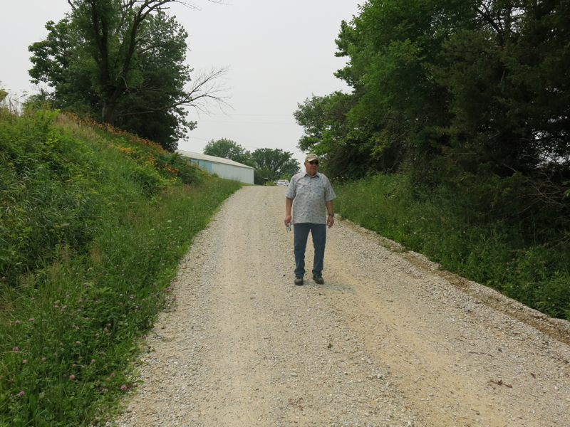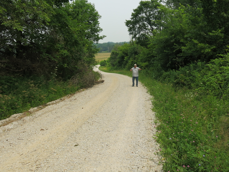 We, THBS’s grandsons, speculate that the most likely spot for this second ambush site was on the slope ascending out of the Fabius River bottom land. The pictures below show one of THBS’s grandsons walking north along the road at what may have been the location of the battle and was perhaps close to the spot THBS was wounded. The speculation is that the Federals charged up this hill and were fired on by Porter's men from the west side of the road (on the right in the next picture and on the left in the two below it).