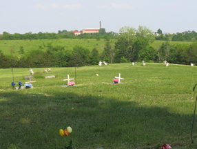 ![]() | She took us out to the cemetery to see their headstones. We also saw a marker for some Confederate sympathizers who were executed in Macon. Across the way from the cemetery, on another hill, Donna pointed out the old Blees Academy, a military academy started by Colonel Blees in the nineteenth century and now used by HUD for low-income housing, and by the Macon County Historical Society. | ![]() |