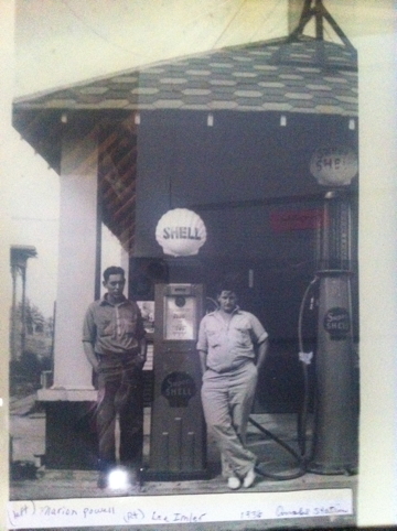 | The picture at left is displayed in the Macon Historical Society. It shows two people standing in front of the Anabel station, the one owned for a time by Thomas A. Stasey. The caption says, "(Left) Marion Powell, (RT) Lee Imler, 1936, Anabel Station."